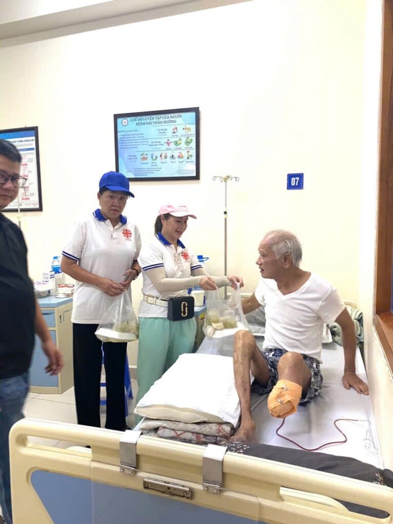 Bước vào bệnh viện, không khí có phần tĩnh lặng và trầm lắng. Nhưng khi nhìn thấy những nụ cười rạng rỡ của các bệnh nhân khi nhận được phần cơm, chúng tôi cảm thấy tất cả những mệt mỏi đều tan biến. Có những cụ già tay run run nhận lấy hộp cơm, đôi mắt ánh lên niềm hạnh phúc. Có những bệnh nhân trẻ tuổi, dù đang phải đối mặt với căn bệnh quái ác,nhưng vẫn nở nụ cười cảm ơn chúng tôi.
