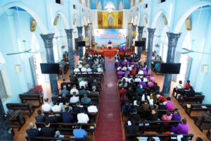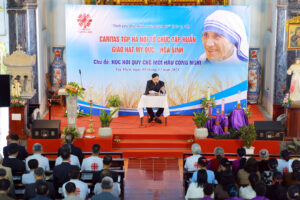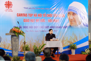 Để giúp cho Ban liên kết Caritas Giáo hạt và Ban điều hành Caritas các Giáo xứ nắm rõ hơn về Quy Chế mới của Ủy ban bác ái – Caritas TGP Hà Nội hậu Công nghị giáo phận năm 2022 và việc làm bác ái được xuyên xuốt trong Giáo phận, Caritas TGP Hà Nội tổ chức tâp huấn tại các Giáo hạt với chủ đề “Học hỏi Quy chế Caritas TGP Hà Nội mới hậu Công Nghị”. Thứ Năm ngày 05.12.2024, tập huấn tại Giáo hạt Mỹ Đức – Hòa Bình với hơn 300 tham dự viên, thứ Bảy ngày 07.12.2024, tổ chức tập huấn tại Giáo hạt Phủ Lý với 200 tham dự viên tham dự.