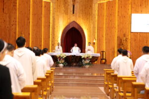 Lúc 5g30 sáng ngày 01 tháng 10, sau cử hành phụng vụ Giờ Kinh sáng là Thánh lễ tạ ơn và cầu nguyện cho Hội nghị, cho Sứ vụ Bác ái của Caritas Việt Nam do Đức cha Tôma chủ tế.