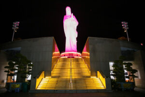 Lúc 16g00, Hội nghị hành hương đến kính viếng Đức Mẹ Núi Cúi trong tâm tình con thảo và được Đức ông Vinh sơn Đặng Văn Tú thuyết trình bao quát về khu Trung tâm Hành hương Đức Mẹ Núi Cúi. Nhân dịp mừng kỷ niệm 20 năm thụ phong Giám mục của Đức cha Đaminh Nguyễn Chu Trinh, Nguyên Giám mục Giáo phận Xuân Lộc, đại diện đoàn Hội nghị, Đức cha Tôma đã chúc mừng và tỏ lòng tri ân Đức cha Đaminh – Nguyên Chủ tịch UBBAXH – Caritas Việt Nam, ngài đã có công rất lớn trong việc tái lập Caritas Việt Nam năm 2008.